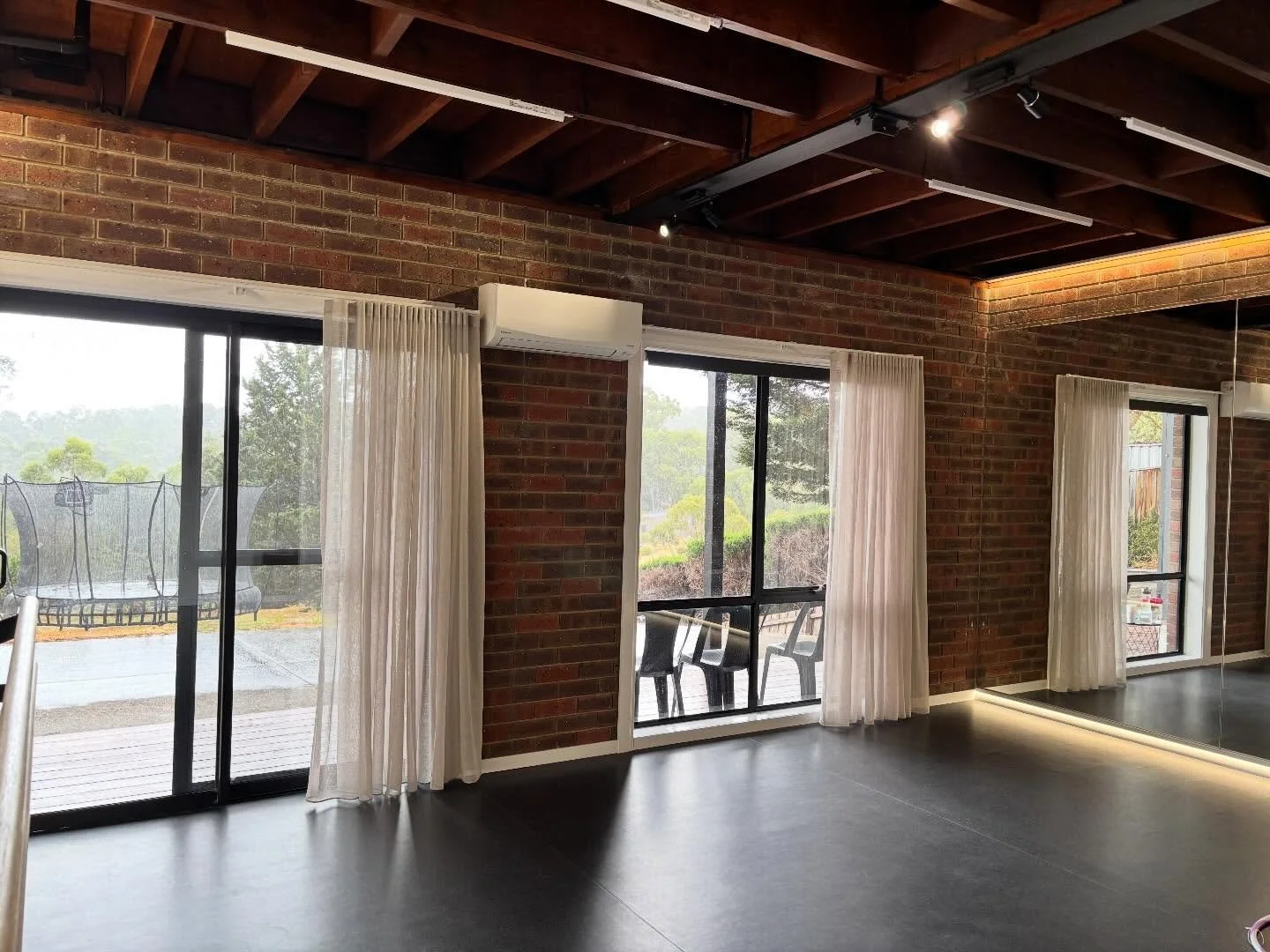 The studio is a 6x7 fully renovated space, with professional level sprung floor and tarkitt overlay by Show Works. A wall of floor to ceiling mirrors and built in ballet barre. Neon lighting, spotlights and LED lighting means we can create different atmospheres for different classes and my students needs